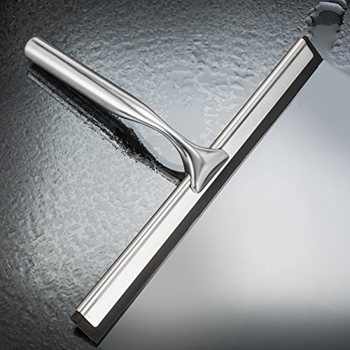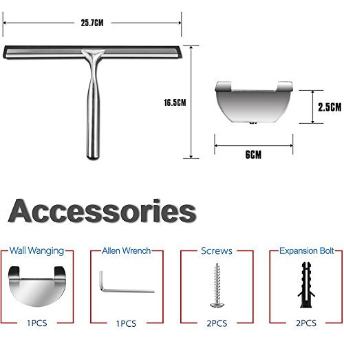 Best Shower Window Squeegee, Heavy Duty 10" Stainless Steel Bathroom Chrome Mirror Wiper Glass Cleaning Squeegee, with Wall Bracket