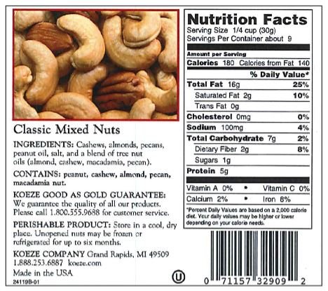 -. Feature : The right-sized box of perfectly roasted deluxe mixed nuts for any occasion. A Koeze Company tradition for over 100 years.