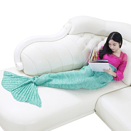Cokle Mermaid Tail Blanket Knit Crochet Bedroom Sofa Sleeping Blanket for Adult Soft for All Seasons 70"x36" Green