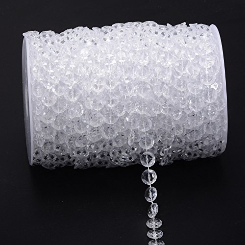 Overall Length: 99 Feet (1 Roll). Clear plastic beads garland are connected by a white thread so you could easily adjust the length and cut to any desired length you need for your decorations or DIY crafts.