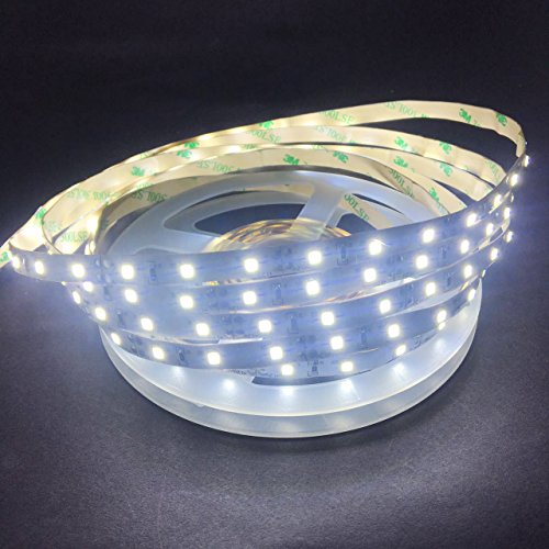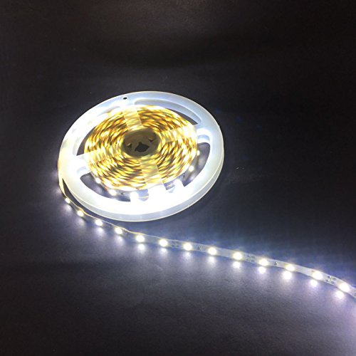 SMD2835 Pure White 6000K LED Light Strip, 16.4ft(5M) 300LEDs/reel DC12V Waterproof SMD Flexible Ribbon Strip light with DC Connector for Kitchens, Cabinets,Bedrooms,Crown Molding & More