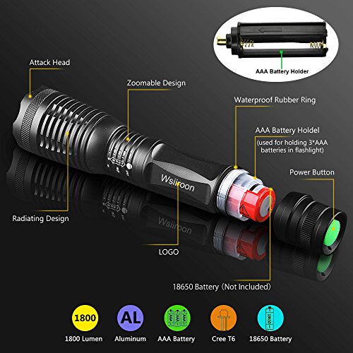 【SUPER BRIGHT 】1800 lumen (max) CREE XML-T6 LED provides bright light over a beam distance of 660ft and reaches nearly 1000ft. Fully zoomable from wide to narrow beam. High-quality LED boast an extended 50000-hour lifespan.