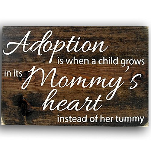 - Hand-made Rustic Wood Sign, 11.25 x 16 x .75 inches - Adoption is When a Child Grows in its Mommy's Heart Instead of Her Tummy.