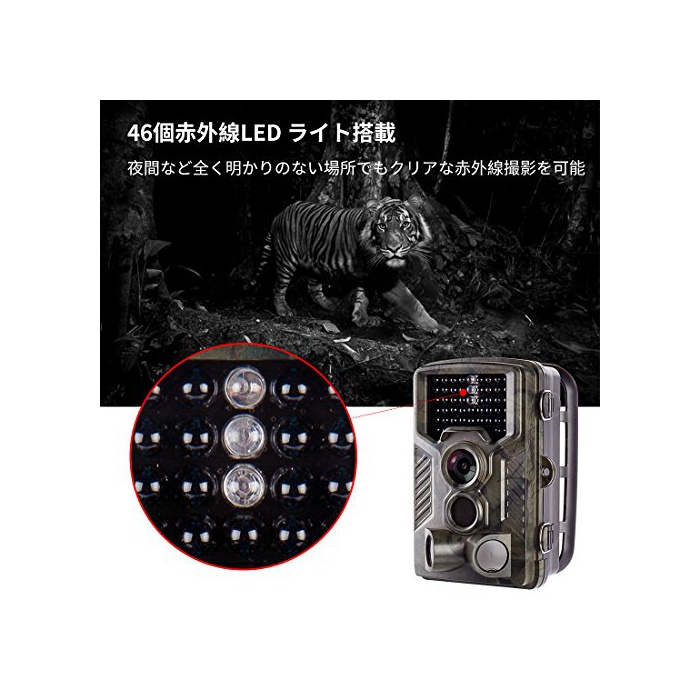 원본상품명: Fivanus トレイルカメラ1600万素 監視カメラ 防犯カメラ1080P 赤外線46LEDライト搭載 IP56 動知カメラ 暗視カメラ (日本語明書)