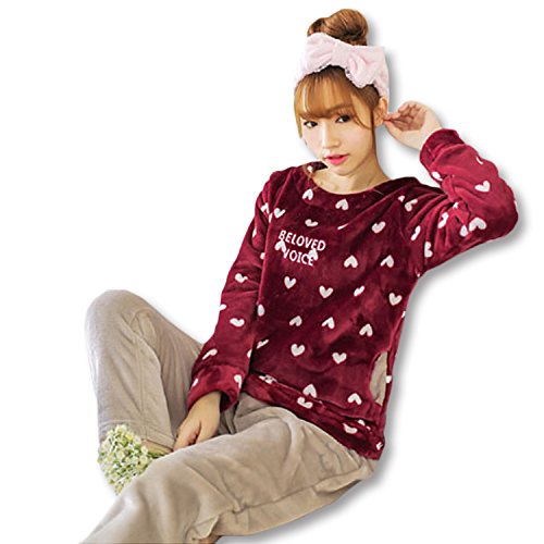 -. Title : LOVETIARA ルームウェア レディース 上下 もこもこ 長袖 冬 秋 部屋着 パジャマ スウェット 肌触り最高ハートプリント ボルドー×ベージュ系 M~XLサイズ