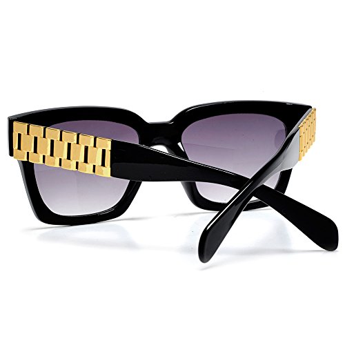 Product Description Hip hop rap mogul watch chain sunglasses. Made from an acetate based frame, metal chain link side temple, polycarbonate UV protected lens. Microfiber bag included. 0