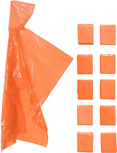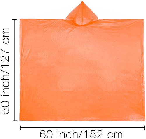 Rain Ponchos With Hood - Emergency Disposable High Visibility, Ultra Light Weight - Adult One Size Fits All - Travel, Hiking, Camping, Picnic, School, Events, Concerts - 10 Pack (orange, 60 x 100)