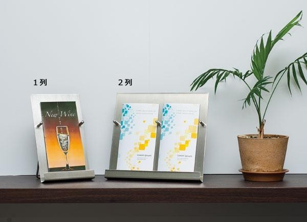 パンフレットやカタログの展示に。シンプルだけど高級感のあるデザインのステンメタルラックです。