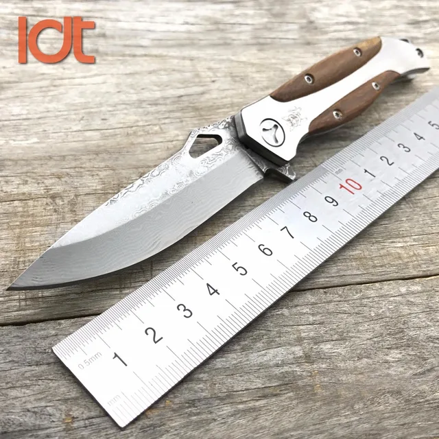 | [해외] LDT 황새치 접는 칼 다마스커스 블레이드 로즈 우드 핸들 캠핑 사냥 포켓 나이프 야외 구조 나이프 EDC 도구 |