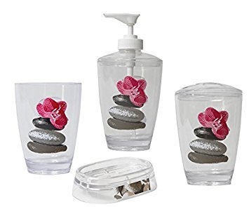 EVIDECO 29 Clear Acrylic Printed Bathroom Soap Dispenser Spa, 2.95" L x 6.50" H, Pink