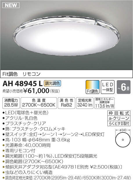 ●調色時定格光束値:2700K時(2995lm・29.4W)/6500K時(3000lm・27.4W)