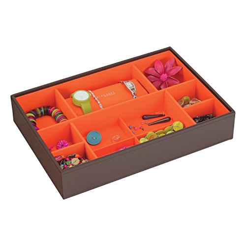 STACKERS jewellery box | chocolate & bright orange watch & bracelet pad stacker accessory
