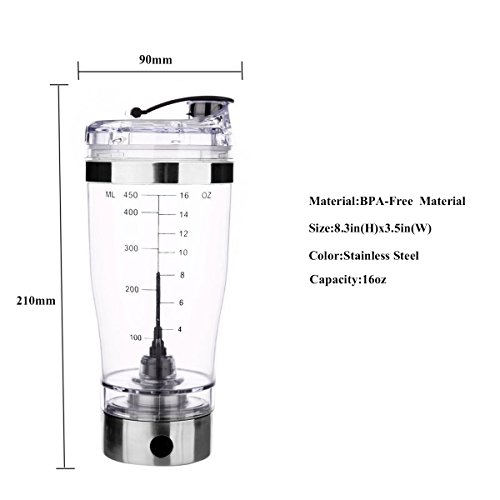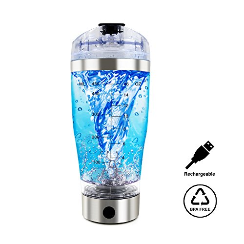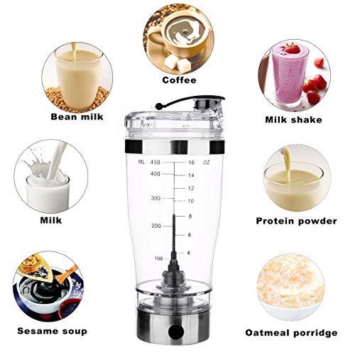 Powerful Electric Protein Powder Shaker Bottle:quickly mixes up drinks no clumping.Just adding the desired liquid, press the power button on the motor to create the vortex, add the powder and wait 30 seconds.It mixes all your powder shakes.Works great with pre-workout & workout powder supplements,creatine,protein,collagen powder and any other powdery substance.Also for juice,coffee and baby formula