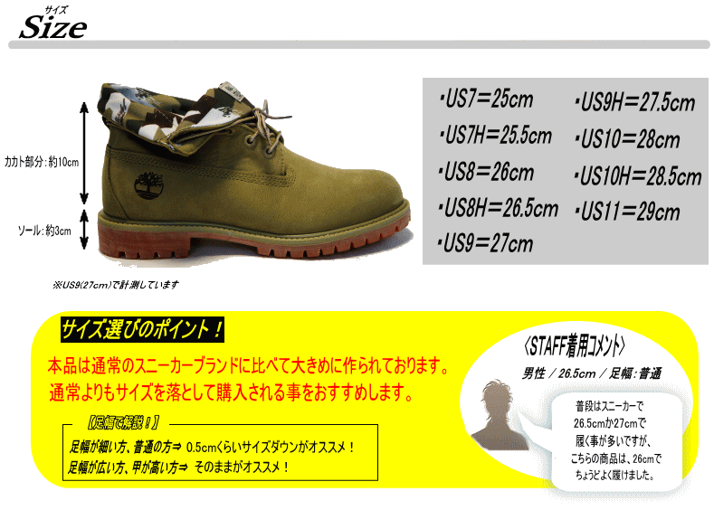 | サイズ | 作り⇒大きめ 【サイズ選びのポイント!】 足幅が細い方、普通の方⇒0.5cmくらいサイズダウンがオススメ! 足幅が広い方、甲が高い方⇒そのままがオススメ! |