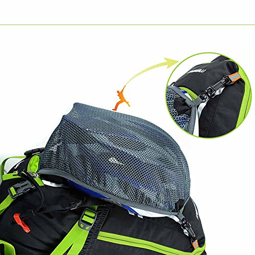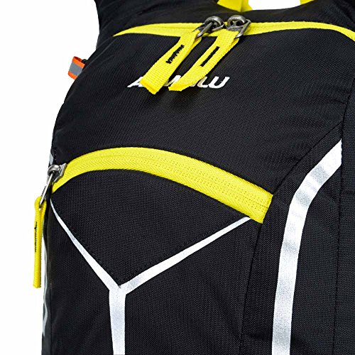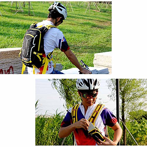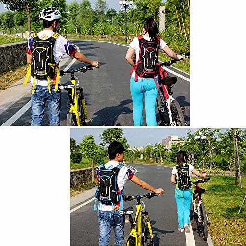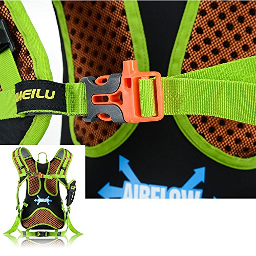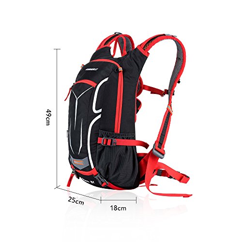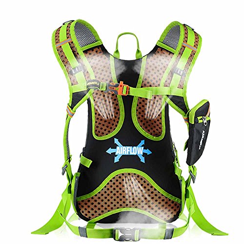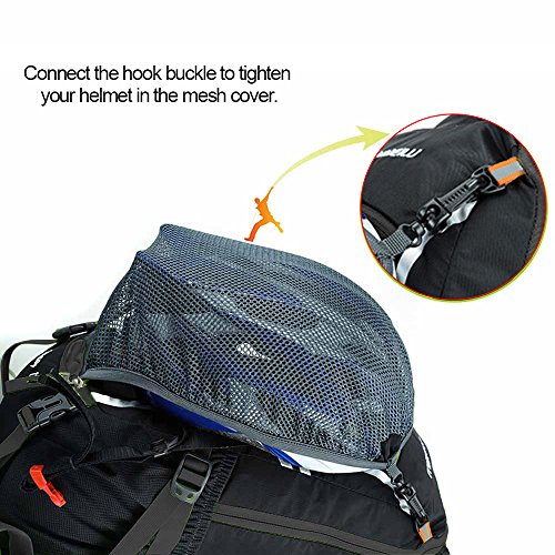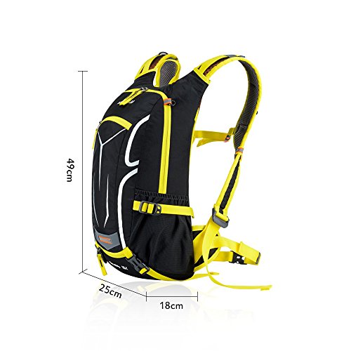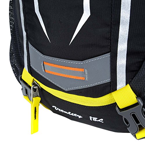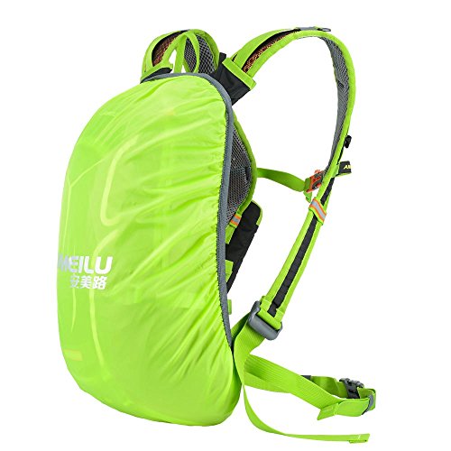 Features: 18L cycling backpack, made of ultralight water-resistant and tear-resistant nylon fabric. Special hole design for water bag (NOT included). Adjustable shoulder strap, chest strap and waist strap to fit your need. Mesh and poriferous EVA design on the back for maximum breathability and comfort. Reflective strips for safe riding at night. Mesh cover to hold your helmet. Rain cover to be used in heavy rain. Detachable pouch for store your cellphone. Suitable for outdoor activities like cycling, camping, mountaineering and hiking, etc.