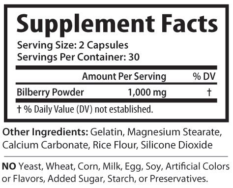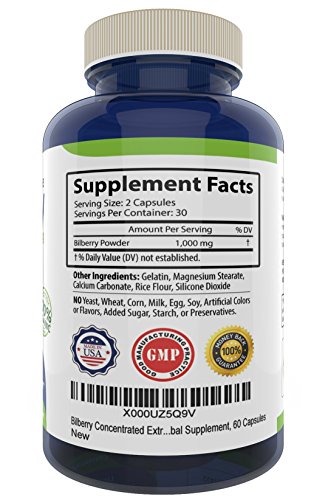 -. Title : Pure Bilberry Extract 1000mg | Improves Eyesight | Rich in Natural Antioxidants | Supports Connective Tissue Health 60 Concentrated Capsules Pills Natural Non GMO Premium Herbal Supplement