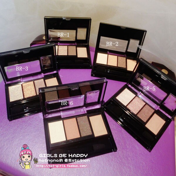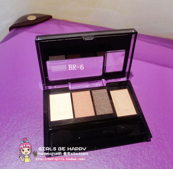 2014年8月kate最新眼影!6款可选! 都是实用的大地色,最重要的是有一格修容色,扫鼻影画假眼窝都很好用! 不论颜色组合,珠光或哑光粉质都很好,细腻且不飞粉。特别添加哑光阴影粉,用作鼻影。粉质堪比大牌,性价比极高