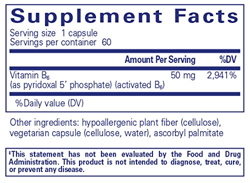 DIGESTIVE SUPPORT: Pyridoxal 5’ phosphate (P5P) is the active metabolite of pyridoxine and is the predominant form of plasma B6. P5P is required for proper absorption of B12 and magnesium, and for the production of gastric HCl.*
