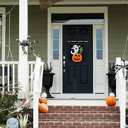 ☻BEST HALLOWEEN DECORATION--You will need a lightweight, quality sign to point the odd trick or treat to your door or outdoor. This cheerful felt sign ticks all the boxes, including popular icons of the holiday with a ghost, witch and jack o' lantern.
