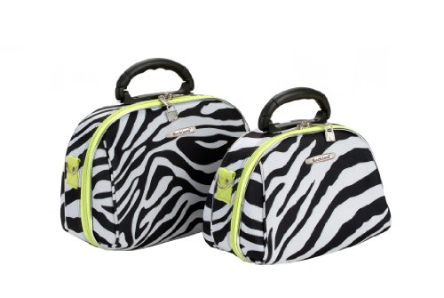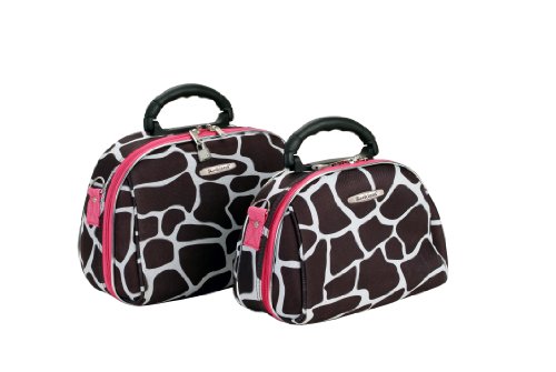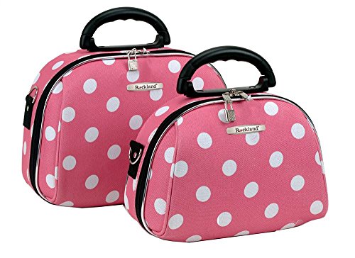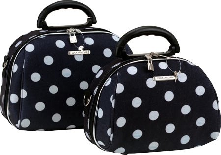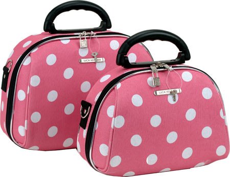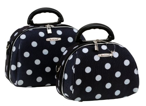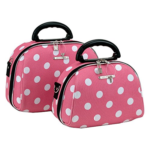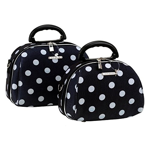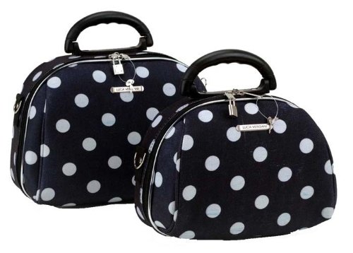 Studio : Fox Luggage Publisher : Fox Luggage Binding : Apparel Product Description This luca vergani deluxe designer 2 piece matching cosmetic case set by rockland is beautiful! The pieces are manufactured with a patented heavy duty 1200 denier eva molded hi count fabric and pvc backing , truly top of the line luggage pieces and are perfect for the serious and experience traveler! Available in the many multiple colors and patterns to match the rockland luggage set lines, manufactured to last with heavy duty 1200 denier eva molded hi count material, also features multi compartment toiletry organizer, handy interior mirror, ergonomic comfort grip handles, includes detachable and adjustable shoulder straps with silver pewter hardware, keys and lock included, fully lined and feature protective bottom feet, large case measures 13 inchw x 9.5 inch x 4 inch, small case measures 12 inchw x 8.5 inch x 3 inch 0
