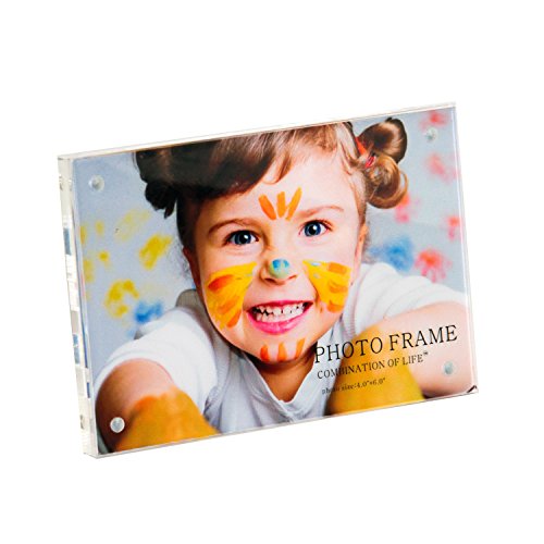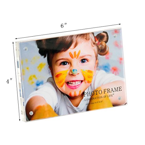 -. Feature : Frameless design adds a modern accent to any decor. Versatile structure fits 4" x 6" portrait or landscape on any countertop area. / Made from two acrylic panels with 4 pairs of magnets and 1 clear acrylic pole. Front panel measures 1/8",back panel measures 1/5". / The see-through design and polished edges of this clear picture frame ensures focus on the graphics. / The table top frame is supported at a slight angle for perfect viewing using the elegant clear acrylic pole supplied. The pole simply insert and off providing attractive support to the frame. Fast, convenient & easy way to change the content with no tools required! / Show off your daily affirmations, inspirational photographs, reminders, simply a daily switch-out of your favorite family photographs or it can also be used as a perfect gift during special occasions!