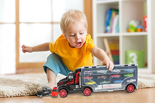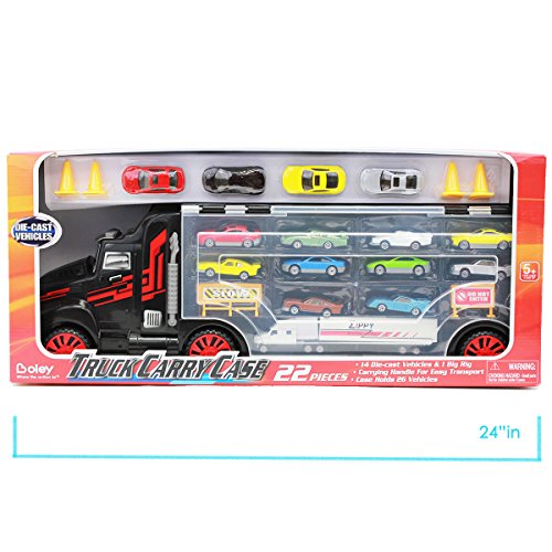 Little wanderers take to the road with Boley's Truck Carrier. Great for storing and displaying your favorite cars, it also features a convenient carry handle for easily carrying to a friend's house. Boley's Truck Carry Case is a fun addition to any child's car collection. It is great for putting your favorite Hot Wheels, Matchbox car, or any miniature size car. Have fun carrying it all in one big giant truck. This play set is ideal for kids who love cars and can have fun imaginative play. A great gift for boys who love toy cars ages 3 and up. The truck's functional wheels offer a realistic design.