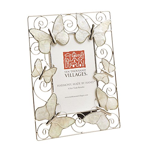 -. Title : Capiz Shell And Wire Butterflies Picture Frame For 3x5 Photo 'Enchantment Frame'