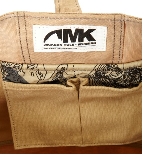 Studio : Mountain Khakis Publisher : Mountain Khakis Binding : Sports Apparel Product Description Fresh flowers. Heirloom tomatoes. Cilantro. Basil. Wild raspberries. Your farmer’s market list may start this simple, but you always find unexpected treasures. Luckily, our Market Tote is plenty big to hold it all. Built with our bomber 20oz canvas, it’s reinforced with 18oz waxed canvas for rugged durability and water-resistance. Recycled climbing rope handles (each is unique). Flap closure with MK rivet snap. Rise Above It with MK 0