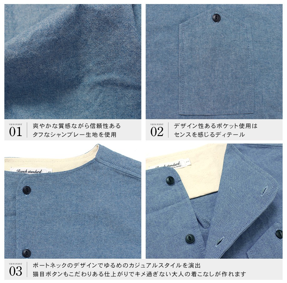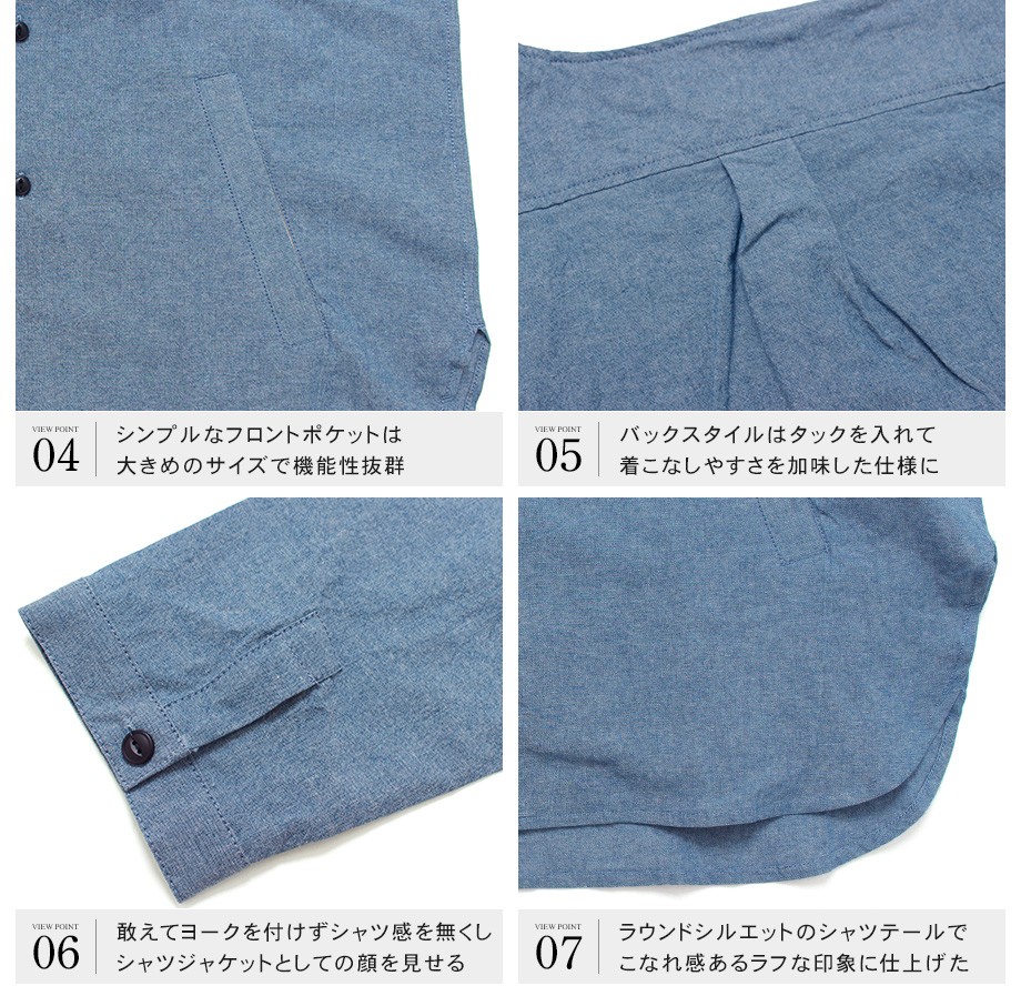 オーバーサイズで少し大きめに着るのが旬なシャンブレーロングシャツ。ポケットのデザインも個性を感じる仕上がりでボートネックテイストのネックラインも雰囲気良いアイテム。仕立ての良いシャンブレー生地を使用しており価値あるトレンドシャツになっております。
