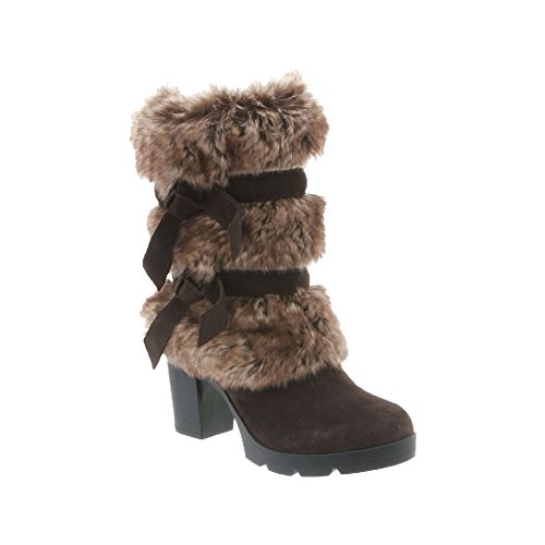 -. Feature : Tall 7 1/2 inches / Suede and faux rabbit fur shaft / Decorative bow accents / Wool blend lining / Sheepskin footbed