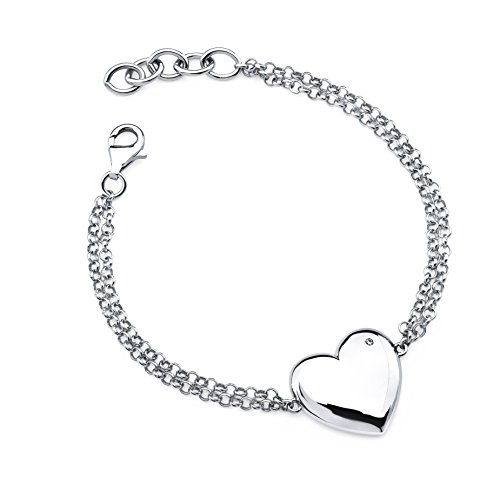 -. Title : Sterling Silver Diamond Accent Heart Bracelet, Adjustable