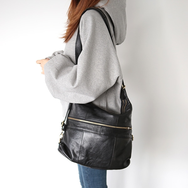 |  유니크한 디테일과 소가죽이라는 고급스러운 재질의 가방이에요 탄탄하고 유연한 소가죽소재로 오래도록 착용하실 수 있으며 고급스러운 퀄리티가 느껴지는 제품이랍니다. 책을 넣을 수 있는 백팩으로도 착용이 가능하시며 다양한 소지품을 수납하시기 좋구요 내부에는 포켓이 더해져서 작은 소지품이 섞이지 않게 수납할 수 있어 실용적이랍니다 어깨에 둘러 매기만해도 시크하고 유니크한 포인트를 연출할 수 있는 가방이기에 상세컷 꼭 확인해주세요~!       | COLOR | 블랙 | | 제품 색상은 모니터에 따라 실제 색상과 차이가 있을 수 있습니다. | | | | FABRIC | 소가죽 | | | | PRODUCT ION | 제조국 / 중국 | | 품질보증기준 / 소비자분쟁 해결기준에 따름 | | A/S 책임자 및 고객센터 / 감성가방 | | | | SIZE INFO | 사이즈는 측정 방법에 따라 1~2cm의 차이가 있을 수 있습니다. | | 스트랩 길이는 연결 고리를 제외한 길이이며, 최대 길이입니다. | | (단위:cm, g) | | 가로 길이 | 세로 길이 | 너비 | 손잡이 높이 | 스트랩 길이 | 무게 | | 40 | 31.5 | 3 | - | 52(조절o) | 2120 |  |