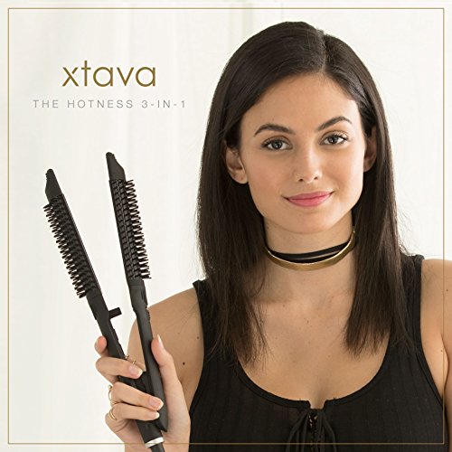 xtava Hotness 3-in-1 Styler - Professional Flat Iron Hot Round Brush and Hair Curling Wand Styling Tool - Includes 1 Inch Ceramic Tourmaline Plates Ionic Bristles...