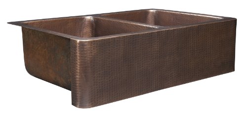 Rockwell Farmhouse Apron Front Handmade Pure Solid Copper 33 in. Double Bowl Copper Kitchen Sink in Antique Copper