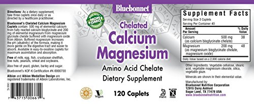 Bluebonnet's Albion Chelated Calcium Magnesium caplets provide a special blend of calcium and magnesium. Buffered magnesium increases the pH of the formula, making it more gentle on the digestive tract and easier to absorb. Available in easy-to-swallow caplets for maximum assimilation and absorption.Feature