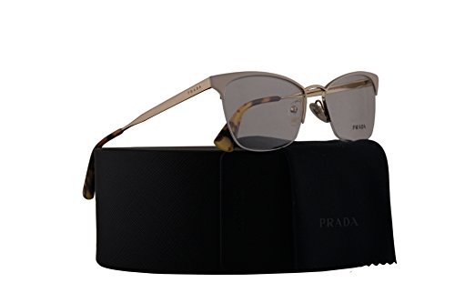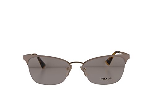 Product Description Prada PR 65QV Cinema eyeglasses are a lacquered metal cat-eye shape frame; available in an array of gorgeous colors to personalize your look Since 1979 when Miuccia Prada took the reigns of this longstanding Italian luxury brand, Prada has become shorthand for artistic and refined style. For women Semi-rimless frame made from corrosion resistant Monel, a metal alloy with a copper and nickel base. Adjustable silicone nose pads for a custom fit Prada logo etched onto the temples Plastic coated temple tips for comfort behind the ear. 0