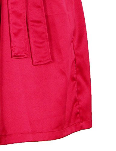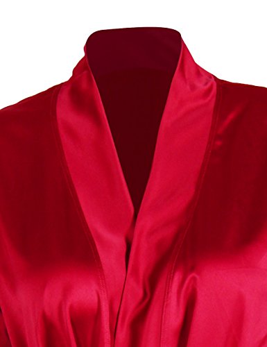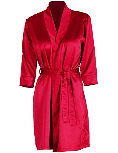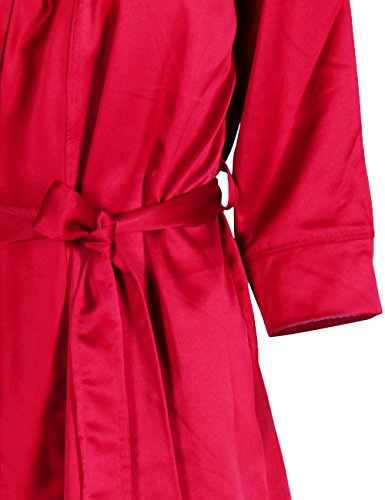 D&P Women's Bathrobe Short Bath Robes with Kimono Collar (M, Red)