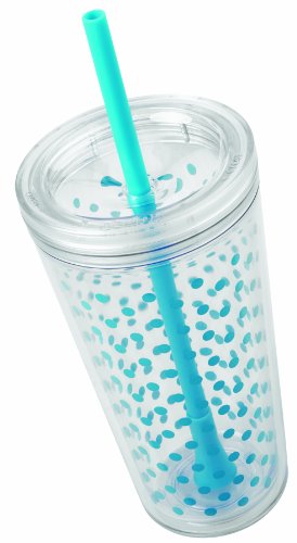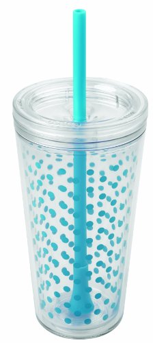 Copco 2510-0430 Minimus Tumbler with Straw, 24-Ounce, Cyan Blue Dots