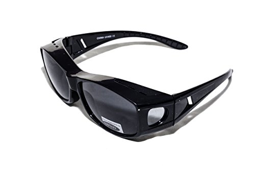 Pointed Designs over-glasses sunglasses are great for anyone who just wants protection from the sun while wearing their prescription glasses. These stylish, no-hassle sunglasses are lightweight and easy to slip on over your prescription glasses. They will fit easily over most glasses and are perfect for both men and women. They are designed to wrap around your face, blocking the sun from the side as well; a practical alternative to expensive prescription sunglasses! Our polarized sunglasses provide 100% UV protection, increased clarity, and glare protection. These make a perfect pair of sunglasses for yourself or even a gift for a loved one. Dimensions: Height - 47mm / 1.85in Arm Length - 30mm / 1.18in Temple Length - 133mm / 5.25in Width - 146mm / 5.75inFeature