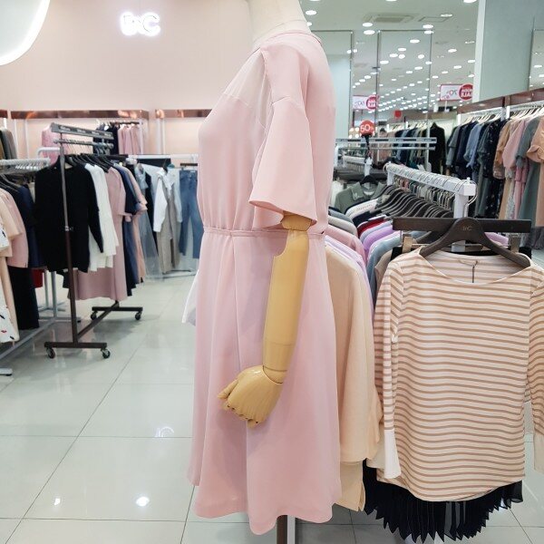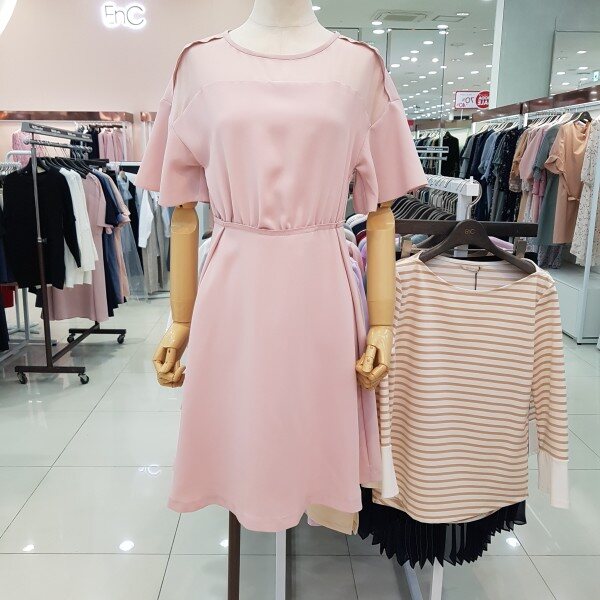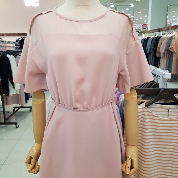 넥선에 시스루느낌이 여성스러우면서도 단아한 원피스 심플한 디자인으로 유행없이 한여름까지 입으실수 있는 아이템