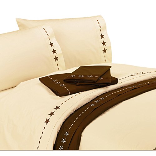 HiEnd Accents Embroidered Star Western Sheet Set, Twin, Cream