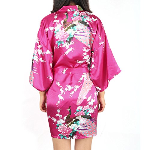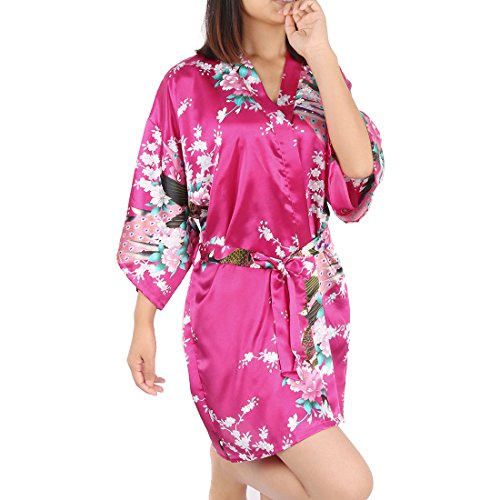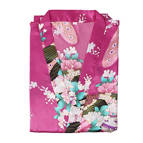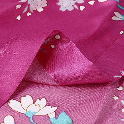 uxcell Womens Satin Robe, Mid-Length Lightweight Dressing Gown - Classic Colors and Prints (Fuchsia Floral, XL)
