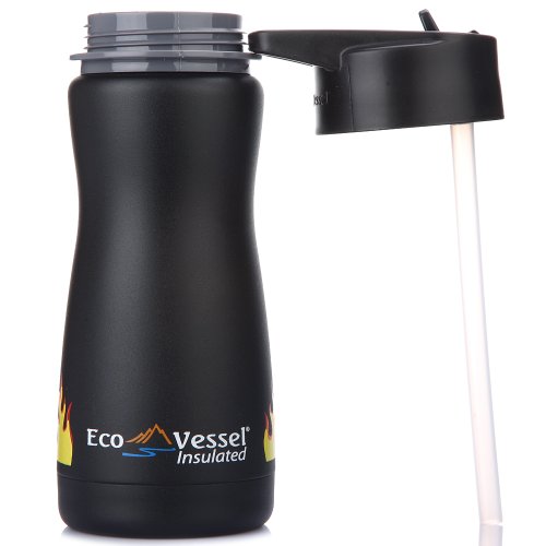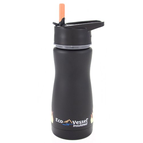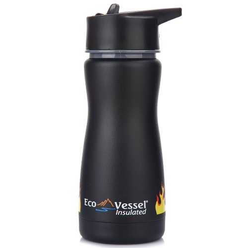 Eco Vessel Frost Kids Insulated Stainless Steel Water Bottle with Flip Straw (13-Ounce, Black with Flames)