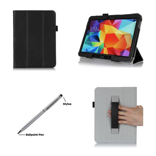 ProCase Samsung Galaxy Tab 4 10.1 Tablet Case with bonus stylus pen - Bi-Fold Stand Cover Case for 10 inch Galaxy Tab 4 (2014 released), with auto Sleep/Wake, Hand Strap, also compatible with Galaxy Tab 3 10.1 (Black)