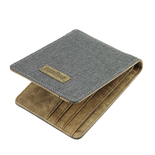 -. Feature : Hot sale super thin fashion canvas wallet, multi-purpose short purse for men boys / Material: high quality canvas, durable and washable / Dimension: 12x9.6x1.2 cm/4.7"x3.8"x0.5", weight: 70g. Slim bifold wallet for easy to carry around / Features 2 cash clips, 3 card slots and 1 photo show window. Great for holding cashes, ID/credit cards, coins, photo, ticket etc. Easy to access / Excellent birthday/Christmas gift for boys, men
