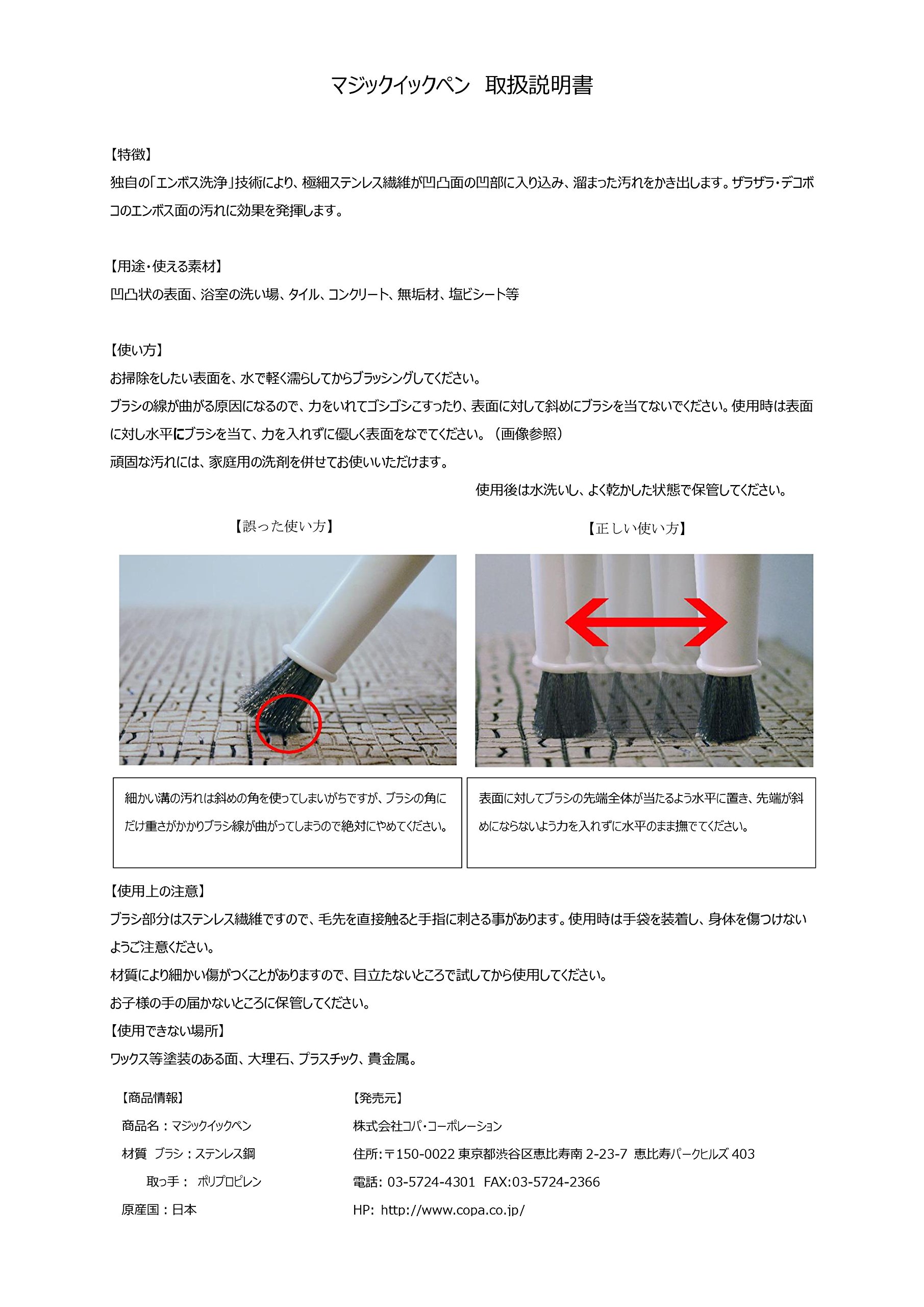 【Applications · Usable Materials】 Uneven surface, bathroom wash place, tile, concrete, solid wood, PVC sheet etc. 【How to use】 Brush after lightly wetting the surface you want to clean.