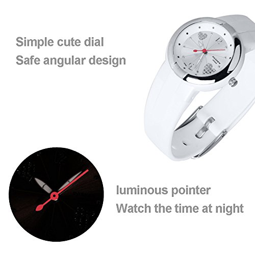 The watch is Japanese quartz movement with analog display,it can help your child read time.