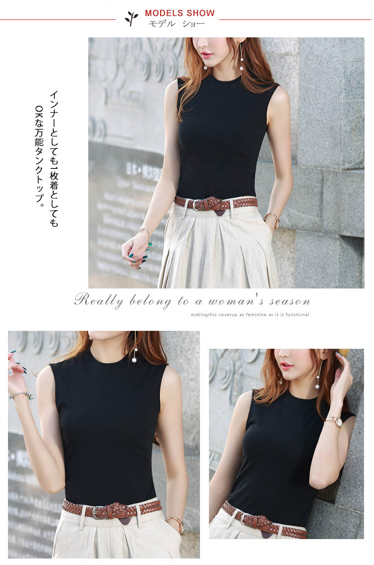 | インナーとしても1枚着としてもOKな万能タンクトップ。ノースリーブになることで、どんなアイテムとももたつかず重ね着が叶います。Tシャツに、カーディガンに、キャミソールに...ハイネックをプラスしていつものコーデをトレンドコーデに変身させてみてください♪何枚あっても使えるヘビロテアイテムです◎ | |