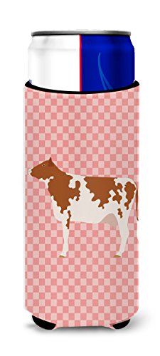 Caroline's Treasures BB7827MUK Ayrshire Cow Pink Check Decorative Hugger, Slim Can, Multicolor