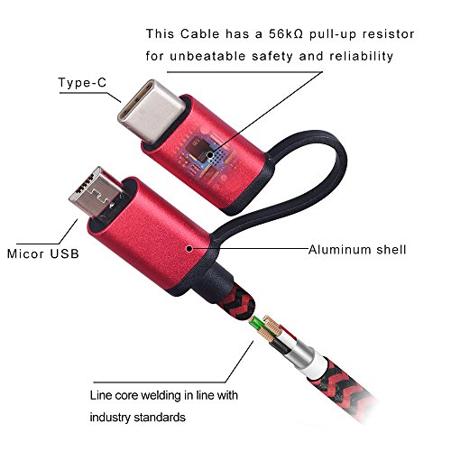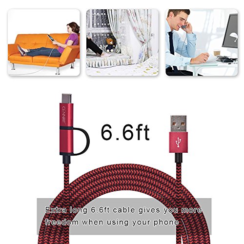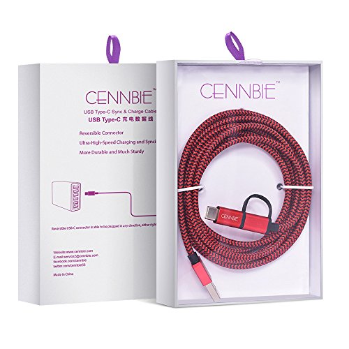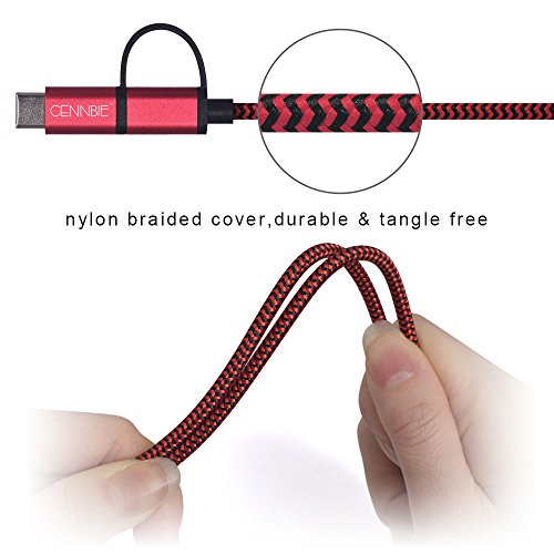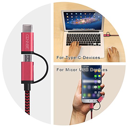 CENNBIE Type C & Micro USB 2 in 1 Design Cable,6.6 Ft Long Reversible USB Type C Charger for MacBook Pro Air,Google Chromebook Pixel,Nexus 6P 5X,Huawei P9,etc (Black and Red)
